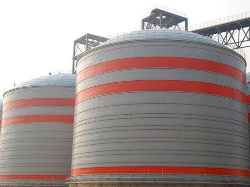 大型钢板库库顶采用网架结构,库内置抗风立柱根据钢板库高径比采用螺旋焊管或国标槽钢,直径400以上螺旋焊管内灌注混凝土,满足了钢板库水平方向的受力要求;钢板库外置环形加强筋采用国标槽钢,间距1.5米左右一环,环形加强筋的使用满足了钢板库内物料涨力的要求,也起到了库体加强作用。抗风立柱和环形加强筋形成钢板库骨架结构,充分发挥了库体的网架性能,在保证钢板库安全使用的前提下,减少钢材使用量,为客户节约了成本。欢迎广大新老客户来电咨询。